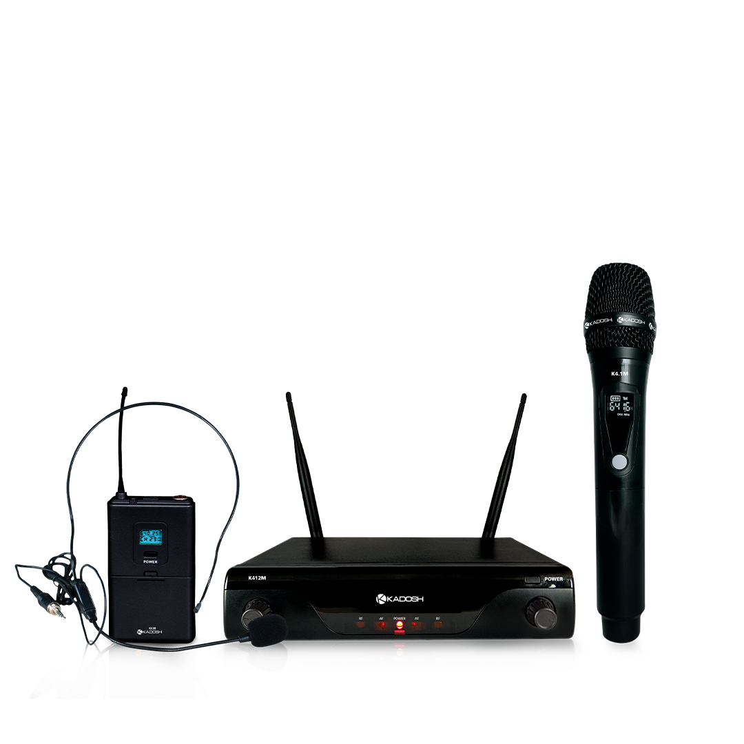 Microfone sem Fio Kadosh K412C Duplo Mão e Head Set UHF